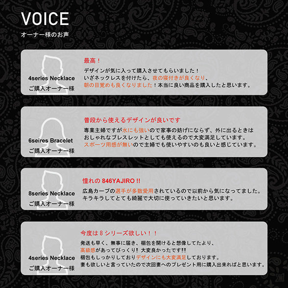 8シリーズは《YAJIROクリスタル》を最大限使用した846YAJIROディープバランサーの原点となった最高峰スポーツネックレスです。